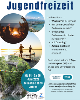 Neuigkeiten und ggf. Änderungen zu den Angeboten finden Sie immer auf unserer Internetseite. Bei Fragen erreichen Sie uns telefonisch unter 08191 128-4730 oder schreiben Sie uns einfach eine E-Mail an: juze@landsberg.de